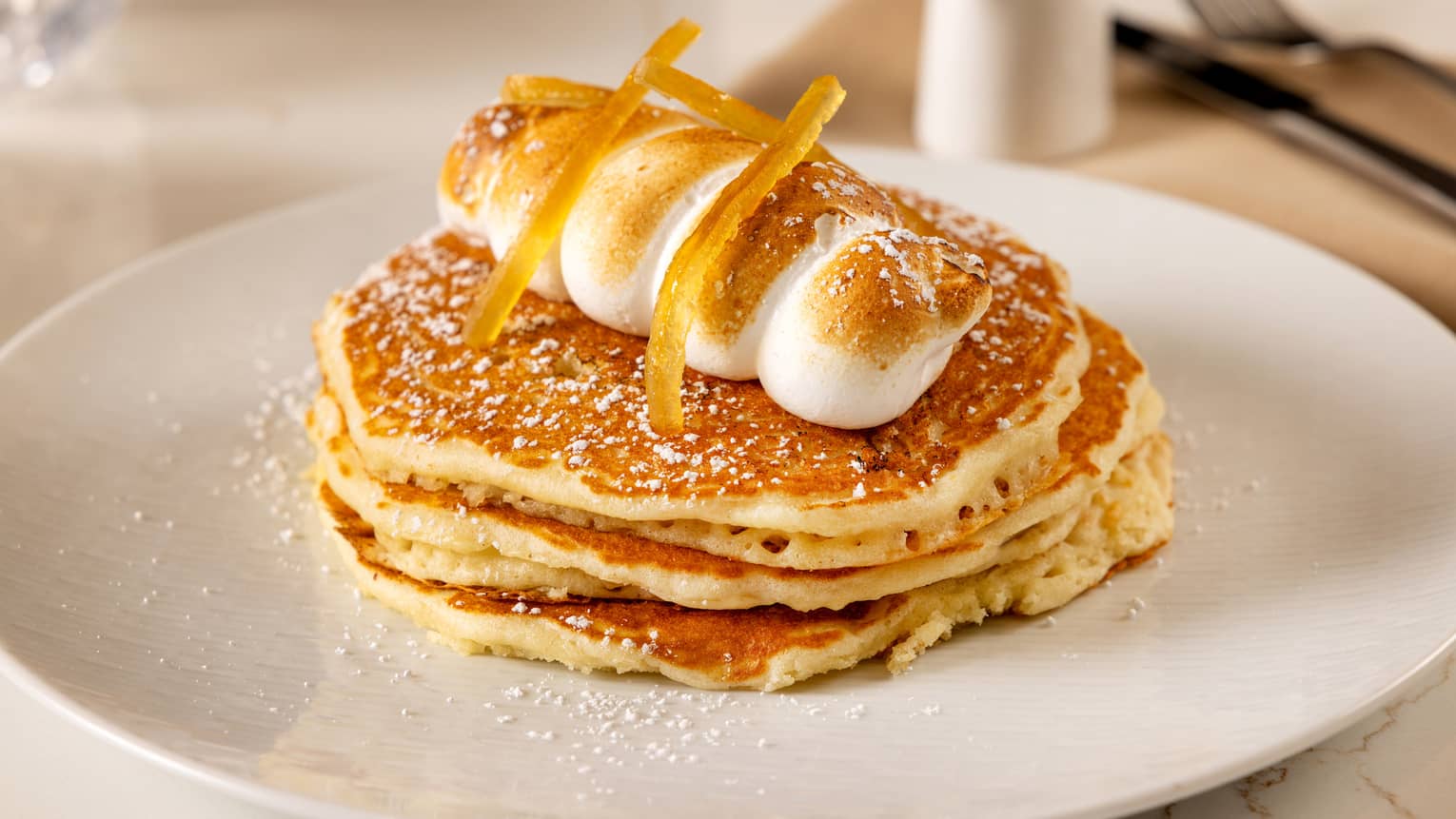 LEMON RICOTTA PANCAKESLemon Meringue, Warm Maple Syrup