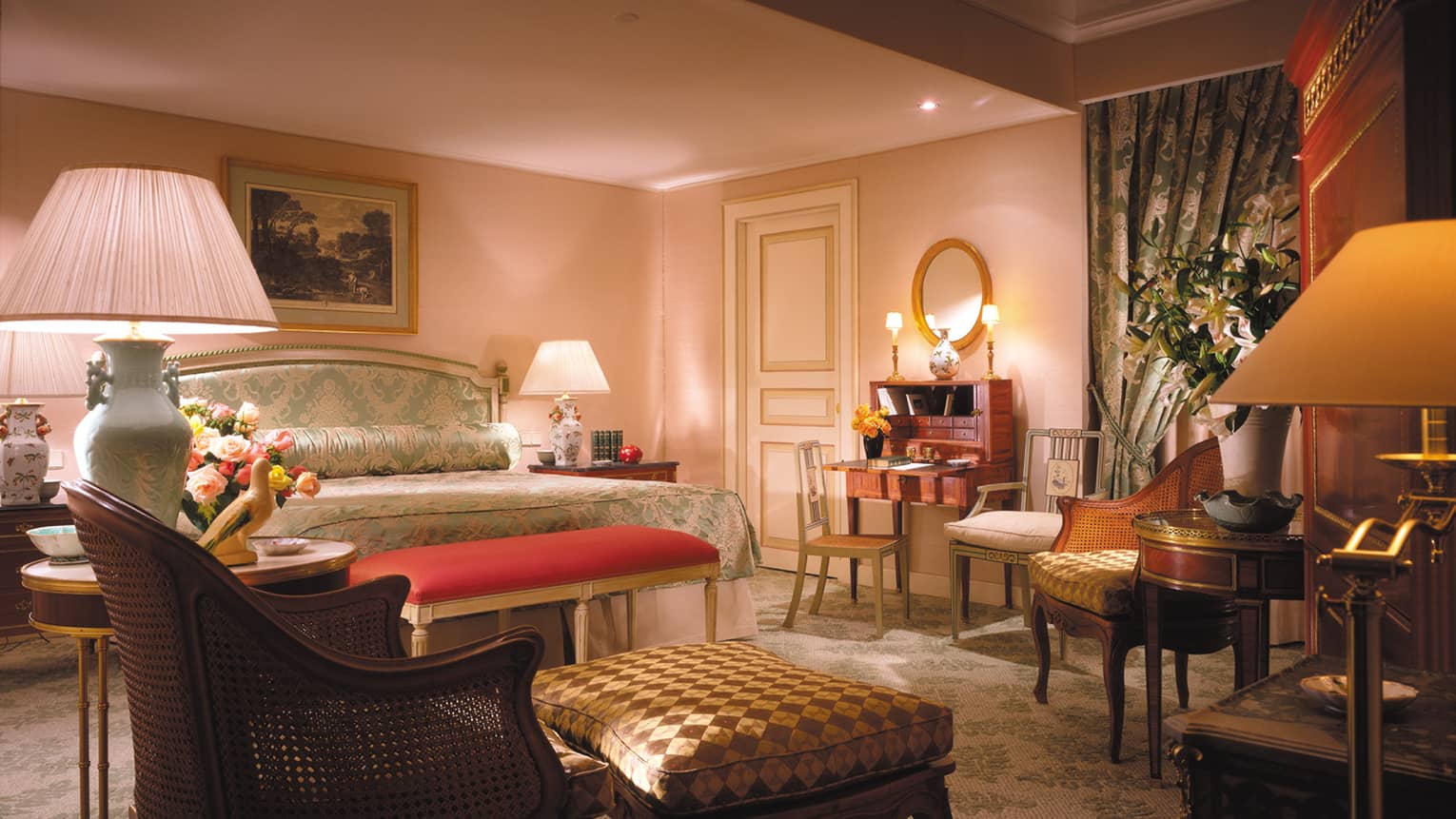 Decorated in Bidermeyer or Pierre-Yves Rochon style, these rooms are located on the top floors of the Hotel with views overlooking the Eduardo VII Park, Hotel gardens, Old Town and city.