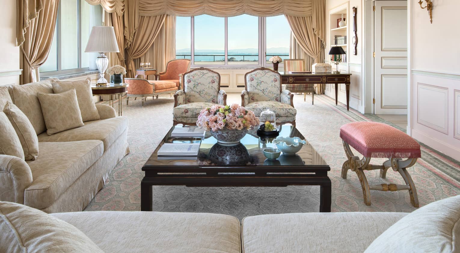 A grand marble entrance welcomes you to this top-floor corner suite, whose living and dining rooms were made for entertaining; a tranquil bedroom offers commanding views of St. George's Castle and the Basílica da Estrela.