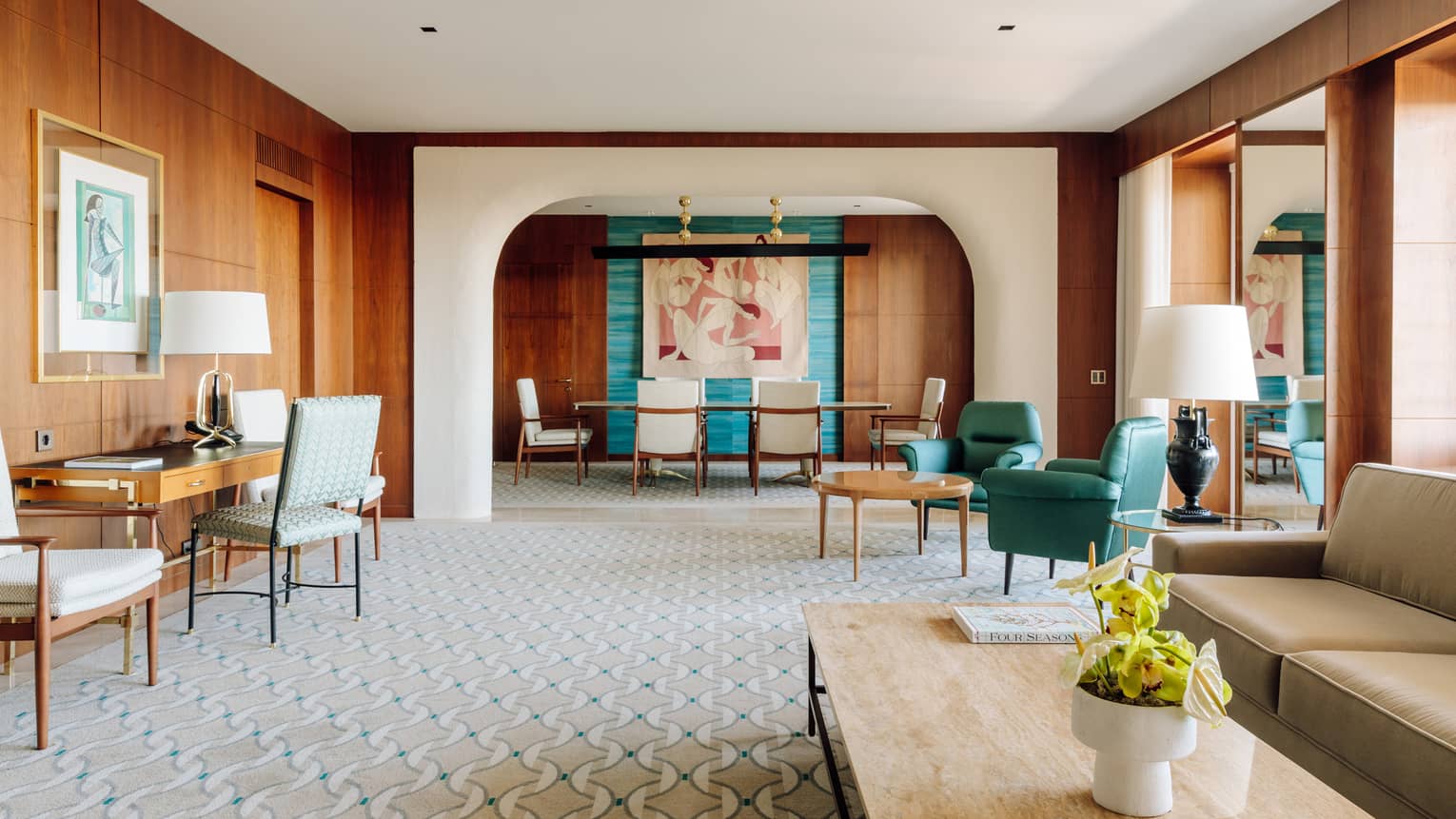 This suite features a bedroom overlooking Eduardo VII Park with a spacious dressing area, plus a comfortable living room that creates a separate space for families, ideal for playtime, relaxation or unwinding while the children rest.