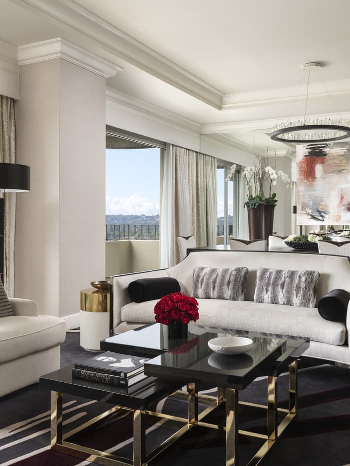 - Three step-out balconies overlooking Beverly Hills and elegant marble foyer