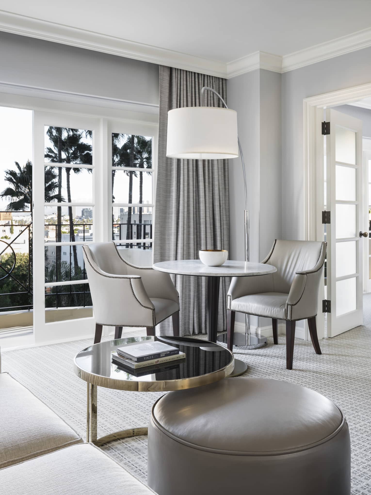 The Grand Doheny Suite offers an elevated stay with sweeping views across the city and surrounding mountains. Relax in the comfortable living area, or step outside to enjoy the California sunshine from one of three private balconies.