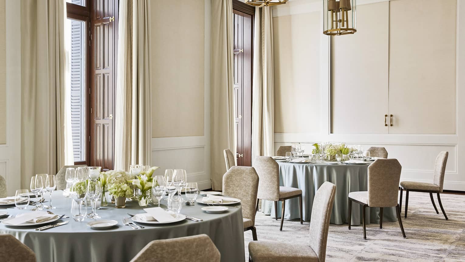 With a rectangular layout that is flexible for all kinds of meetings and events, Alcalá is bright with natural light from a row of three French doors overlooking Calle de Sevilla. Open the doors for fresh air and access to the step-out balconies.