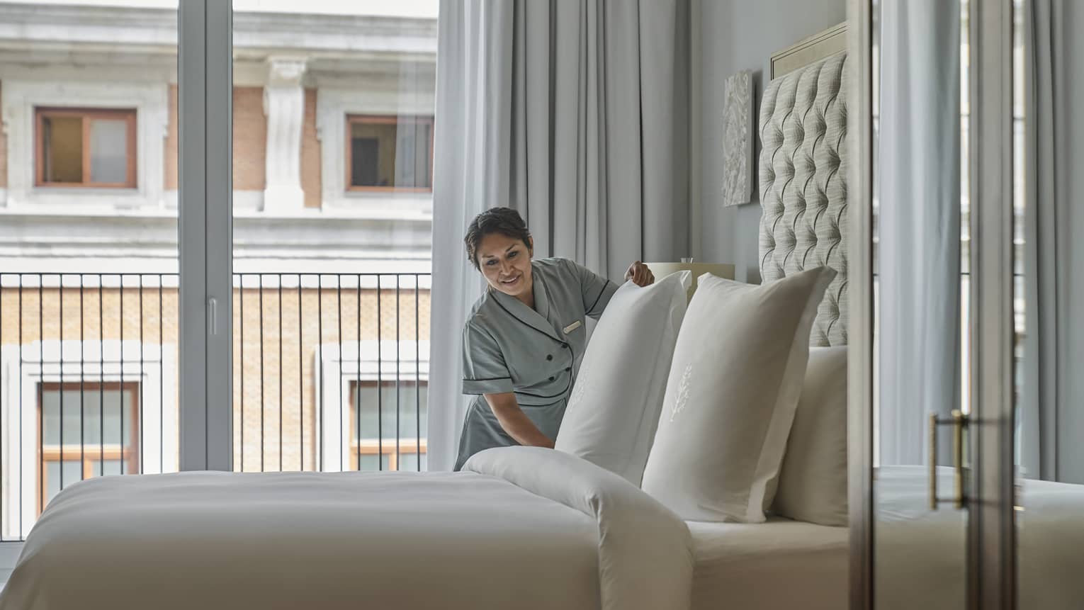 Puerta del Sol Two-Bedroom Suite with TerracesDiscover unrivalled luxury with two of the finest terraces at Four Seasons Hotel Madrid, showcasing breathtaking views of the city skyline. This suite features two adjoining bedrooms, ideal for families, offering both connection and privacy. Perfect for savouring the beauty of Madrid in comfort, it’s designed for seamless family experiences.