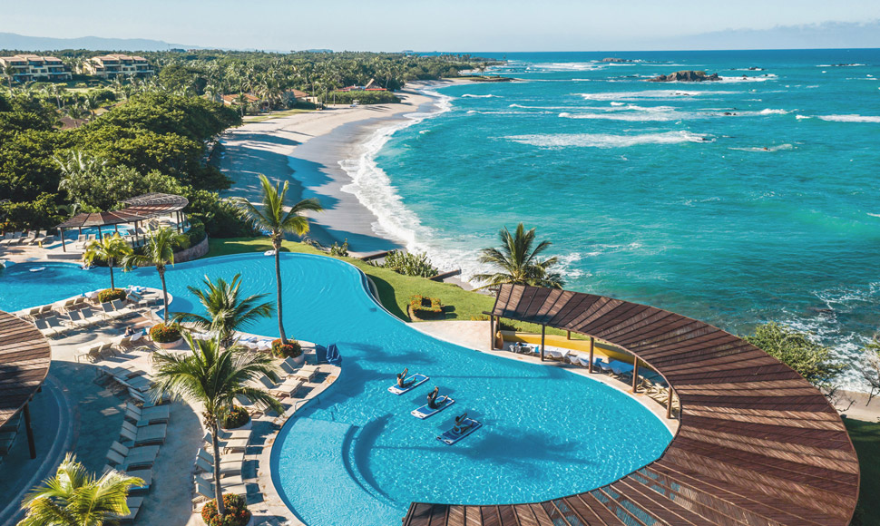 From a free-form infinity pool fronting the Pacific in Punta Mita to a lazy river in Orlando, these Four Seasons water features offer immersive bliss.