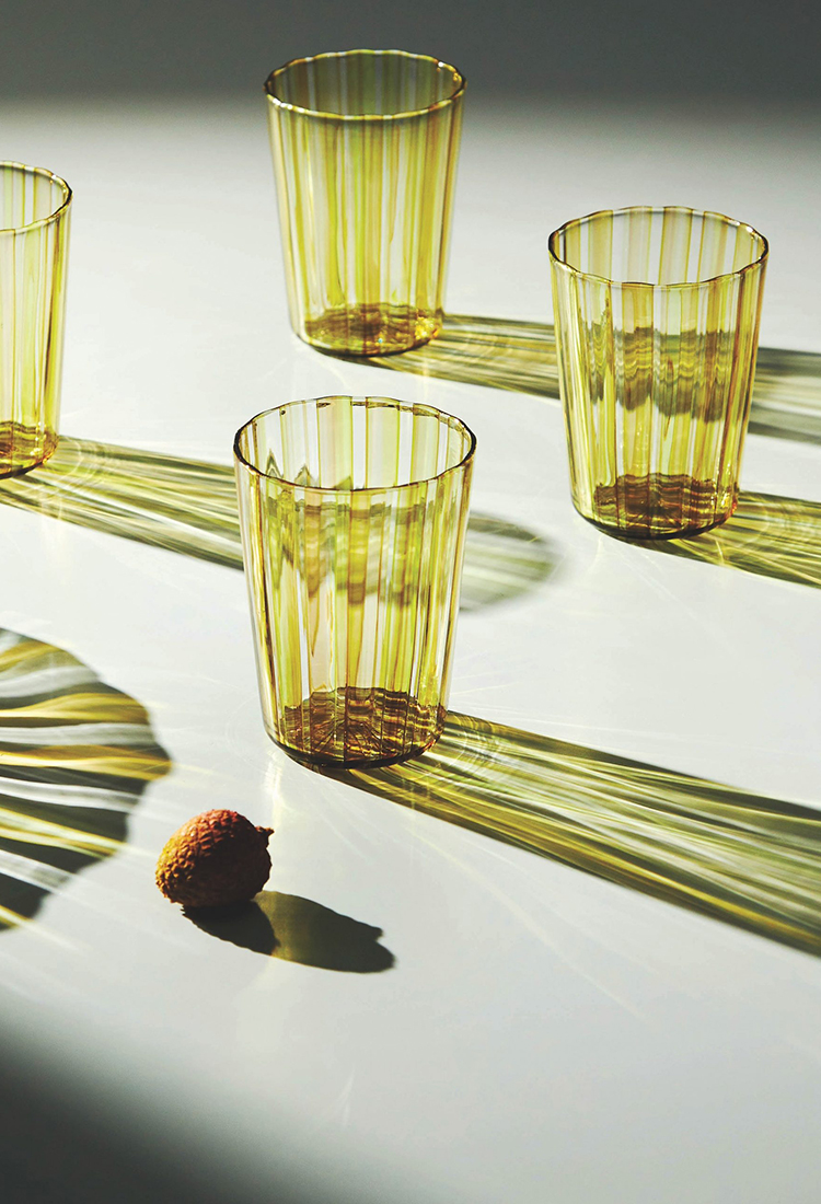 HANDPICKED FOR HOME: If, like most style obsessives, you’re still mourning the demise of MatchesFashion.com, fret not: co-founder Tom Chapman, with his signature edgy, eclectic eye, is now running Abask, an online outlet specializing in home and design. The site epitomizes the search for exclusivity that remains a core driver for luxury. It features 2,000 or more handpicked treats, both antique and contemporary, as well as its own reissues of design classics from the likes of NasonMoretti, the Murano-based glassworks. This season’s particular focus: Japanese makers. Take your pick between Kyoto-based Seikado, renowned for exquisite pewter for almost 200 years; Kagawa-based Mori Glass, including the studio’s striped tumblers (pictured below); and the Tokyo-based contemporary home line Thursday Furniture, among others. —M.E.
