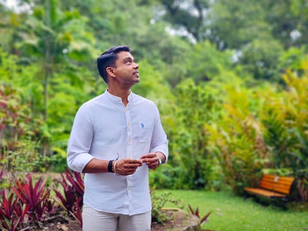 “I have a strong interest in medicinal plants, and there are 37 here, with an abundant variety of spices and fruits—from fragrant vanilla and cloves to fresh guava and starfruit. The aromas remind me of my time studying at Ayurveda College in Trivandrum, [India], especially the nutmeg, which is medicinal plant No. 3 on the Spice Garden map.”