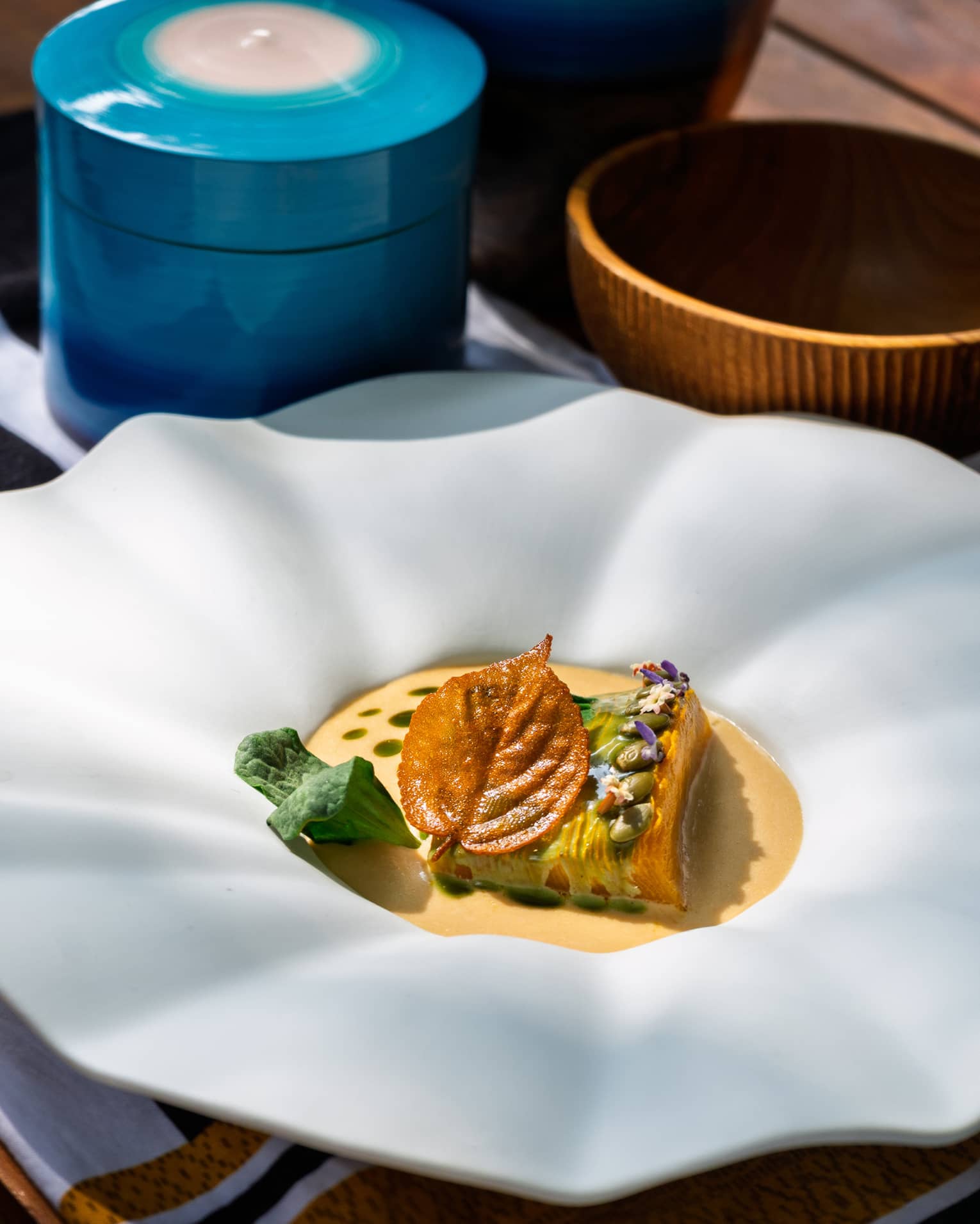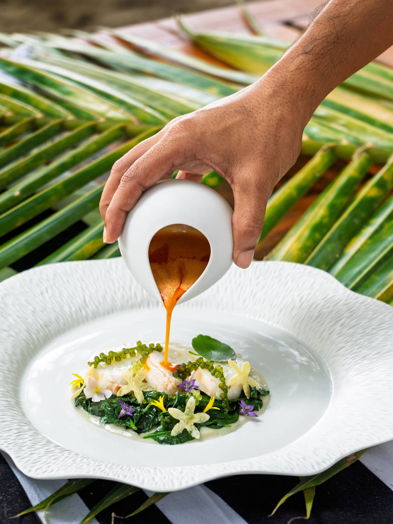 Maldivian Roots offers a modern gastronomic journey that celebrates ingredients sourced from across the islands: Landaa-grown vegetables, herbs and sea grapes; diver-caught lobster; and freshly harvested coconut. Indulge in four atoll-to-table courses, each carrying its own story of seasonality and locality.