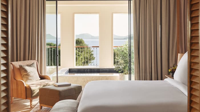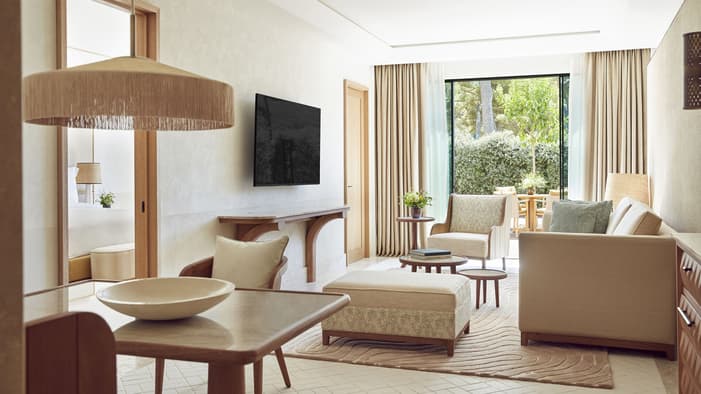 Formentor SuiteBask in the natural light and sea views of the Formentor Suite – a space where elegance meets tranquillity. A private terrace, spacious interiors and a calming palette invite deep relaxation. With a separate lounge and dining area, a generous bedroom and a luxurious bathroom, every detail is curated for comfort and complete serenity.