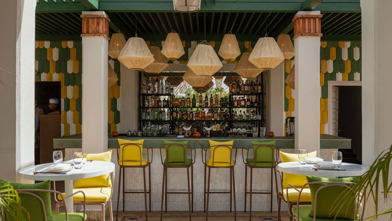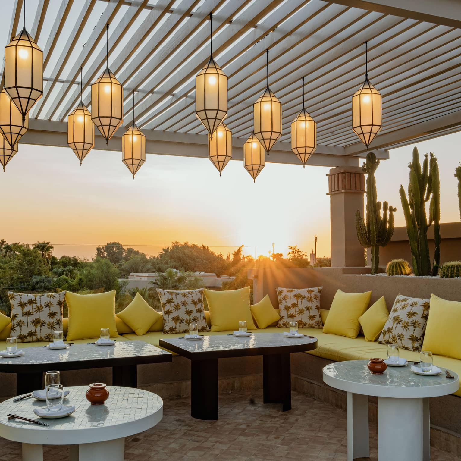 Gather with family and friends for a 360° experience in the heart of our Resort’s gardens with views of the Atlas Mountains and city gardens. Providing relaxation and socializing, our rooftop destination features creative cocktails and eclectic bar bites, whether enjoyed at high tables or in chic seating.