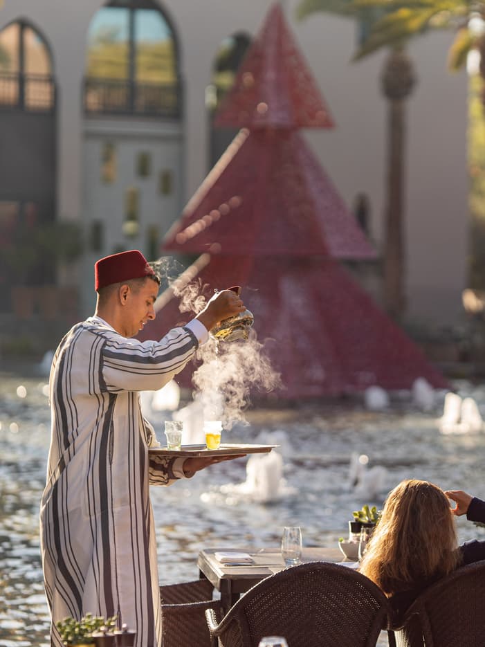 Gather with family and friends for a 360° experience in the heart of our Resort’s gardens with views of the Atlas Mountains and city gardens. Providing relaxation and socializing, our rooftop destination features creative cocktails and eclectic bar bites, whether enjoyed at high tables or in chic seating.