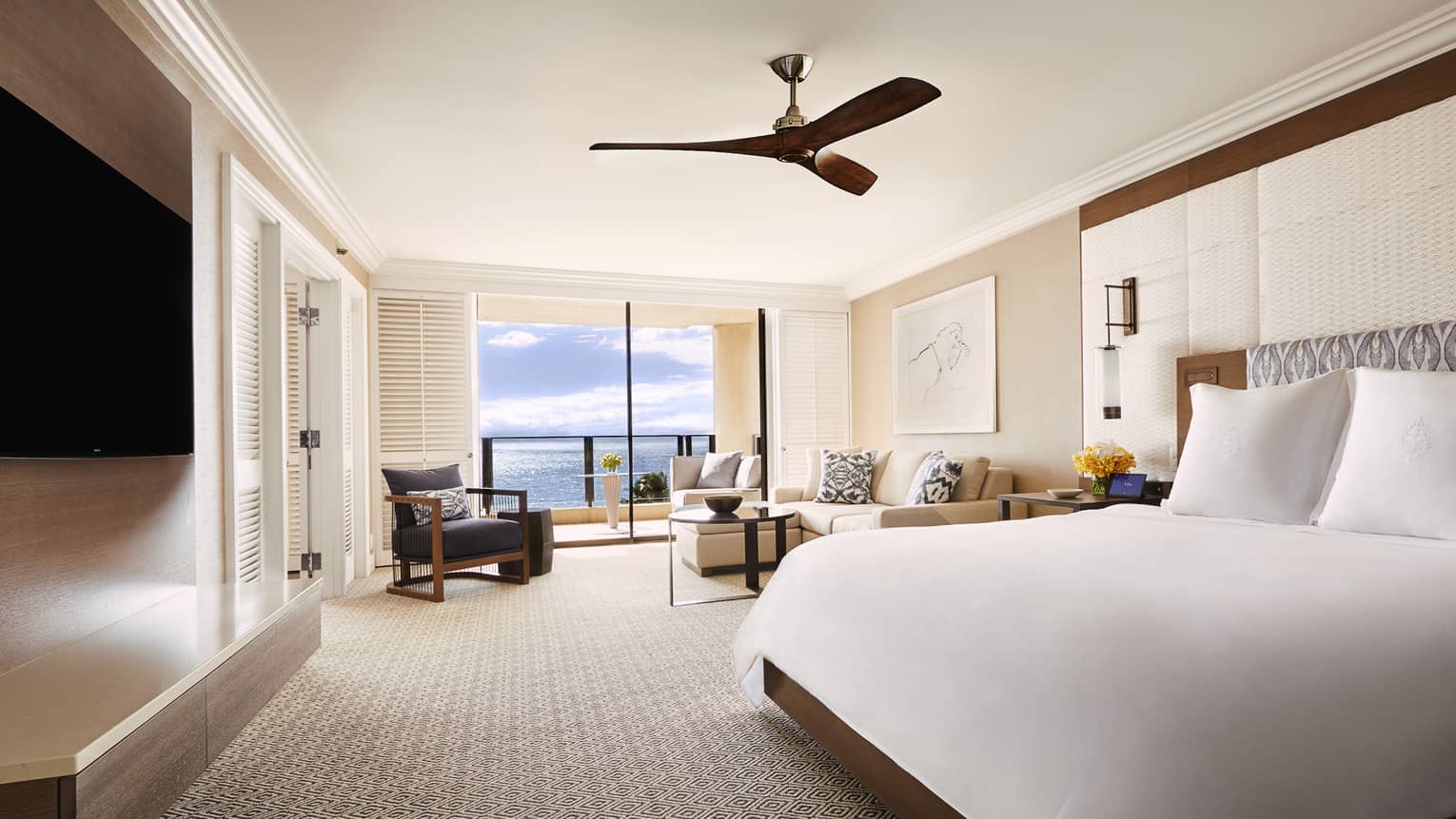 Well-appointed balconies feature comfortable living and commanding views of the Pacific and Wailea Beach. These light and airy suites offer flexible configurations of up to four rooms, perfect for groups.