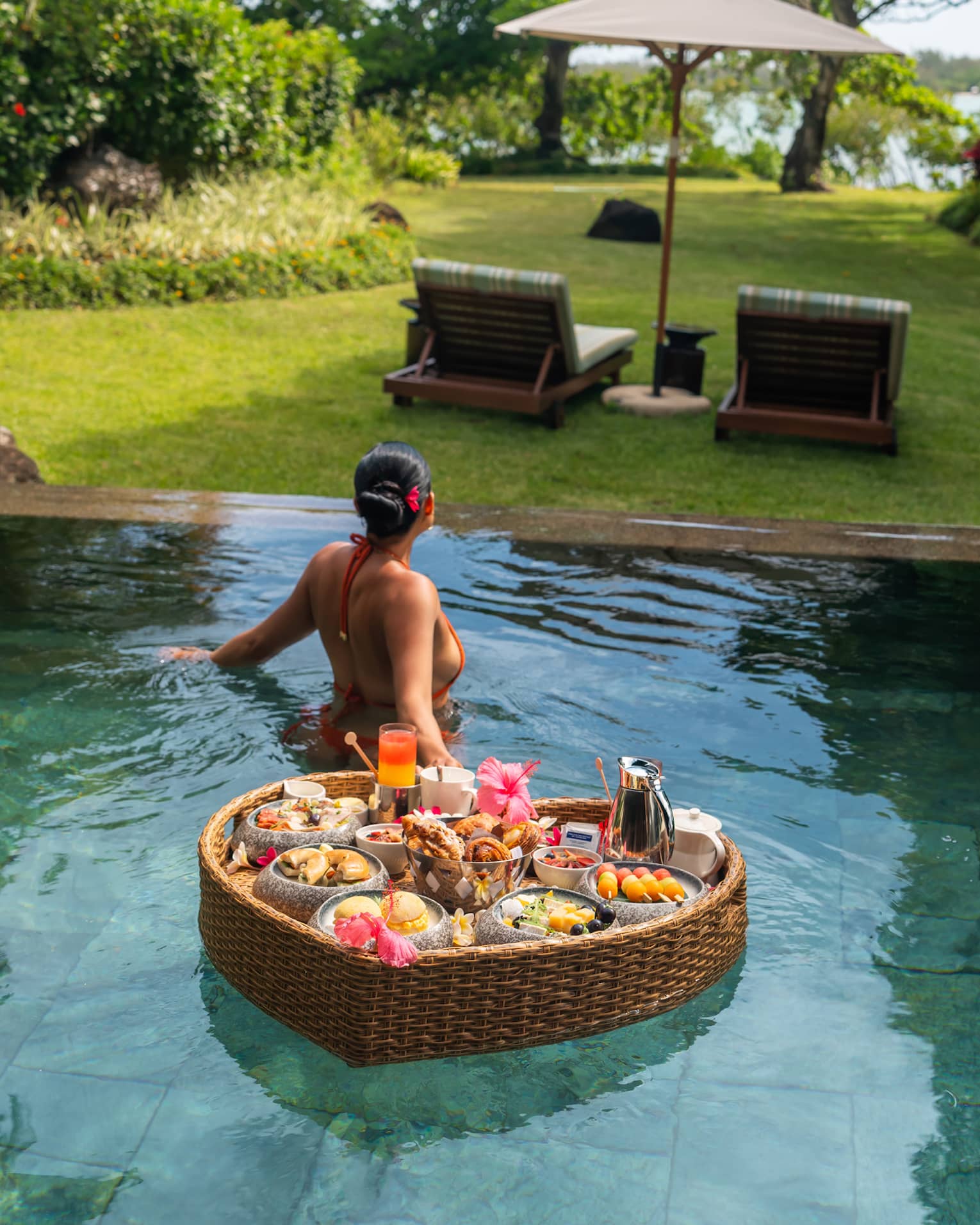 Island Romance: a lovingly prepared breakfast, floating in your private pool
