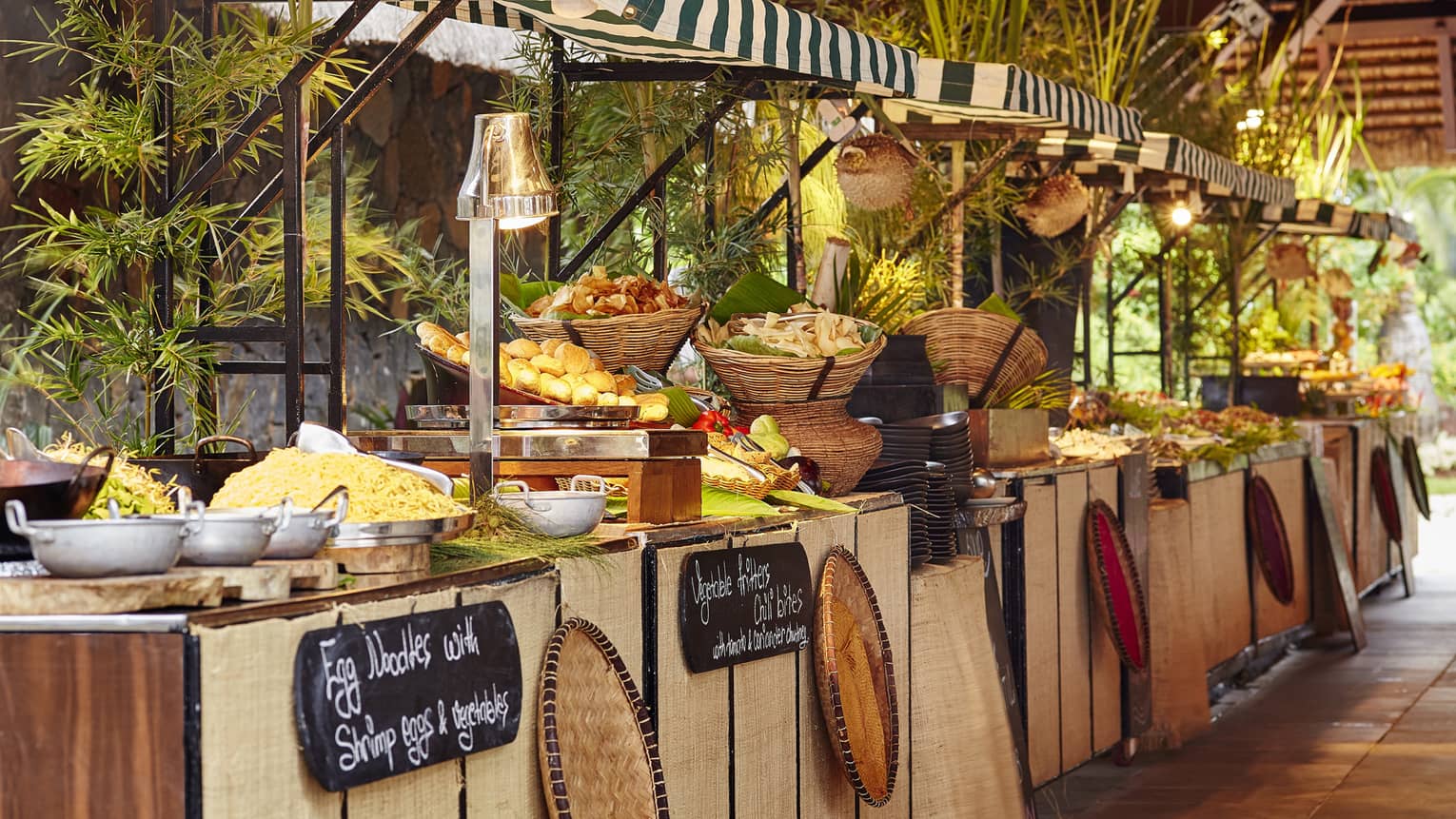 Mauritian Meals for a CrowdOur tropical buffet menu embodies our melting pot of cultures and colonial past. Dishes include Creole chicken in pineapple rice, seafood vindaloo and banana flambé.