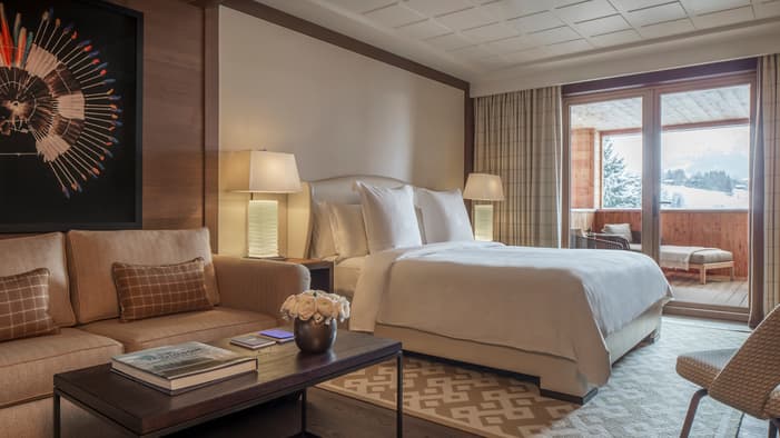 Look upon the valley floor or to the French Alps from these spacious rooms. With separate sitting areas and private balconies, the rooms are ideal for small families.