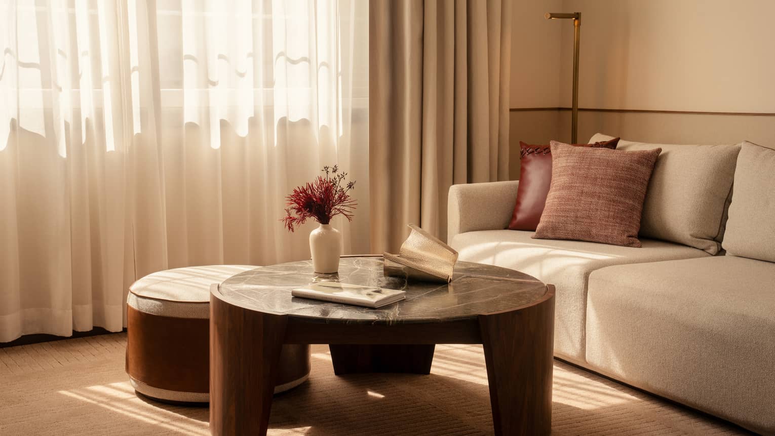 Our Deluxe Rooms combine contemporary style with the warmth of Mexican materials and craftsmanship. Earth tones, natural woods and handcrafted textiles create a serene and inspiring atmosphere, ideal for a romantic getaway, a weekend with friends or a relaxing stay in the city. These rooms are distinguished by their views of the Hotel’s interior courtyard – a peaceful setting that provides a sense of privacy and tranquillity in the heart of the capital.