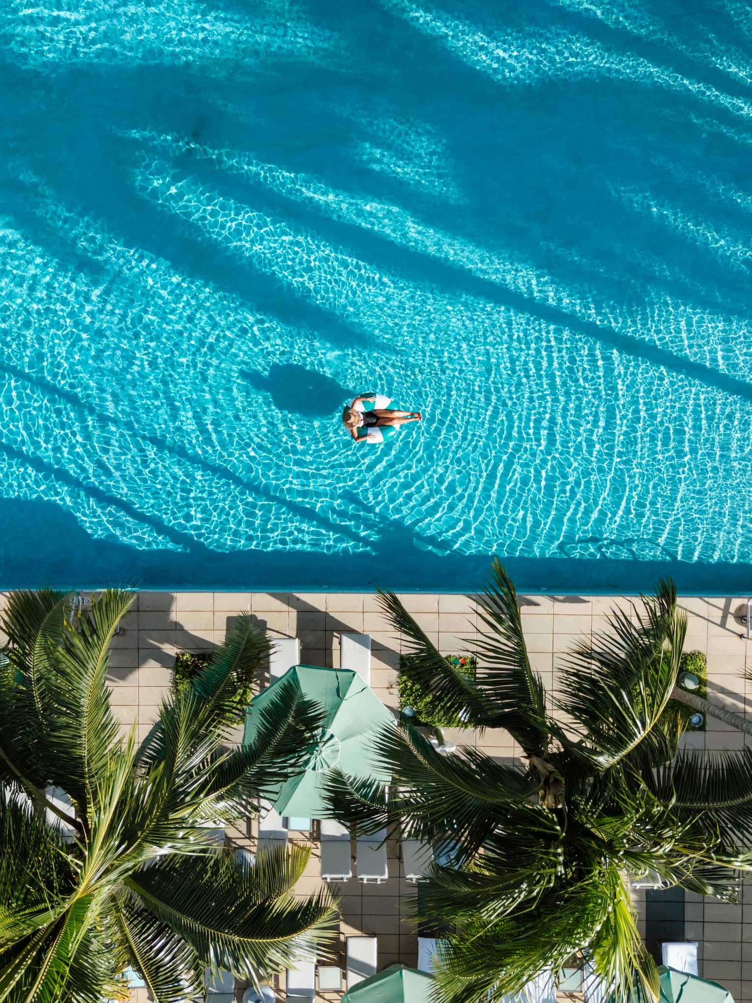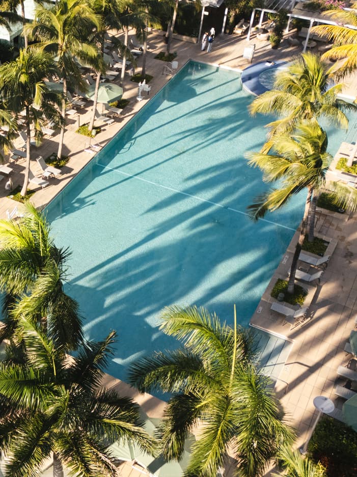 On the seventh floor, our expansive rooftop pool terrace invites you to enjoy easy days in the sun with a grand pool, over-water hammocks, cabanas, and refreshments including spritz bars and gelato.