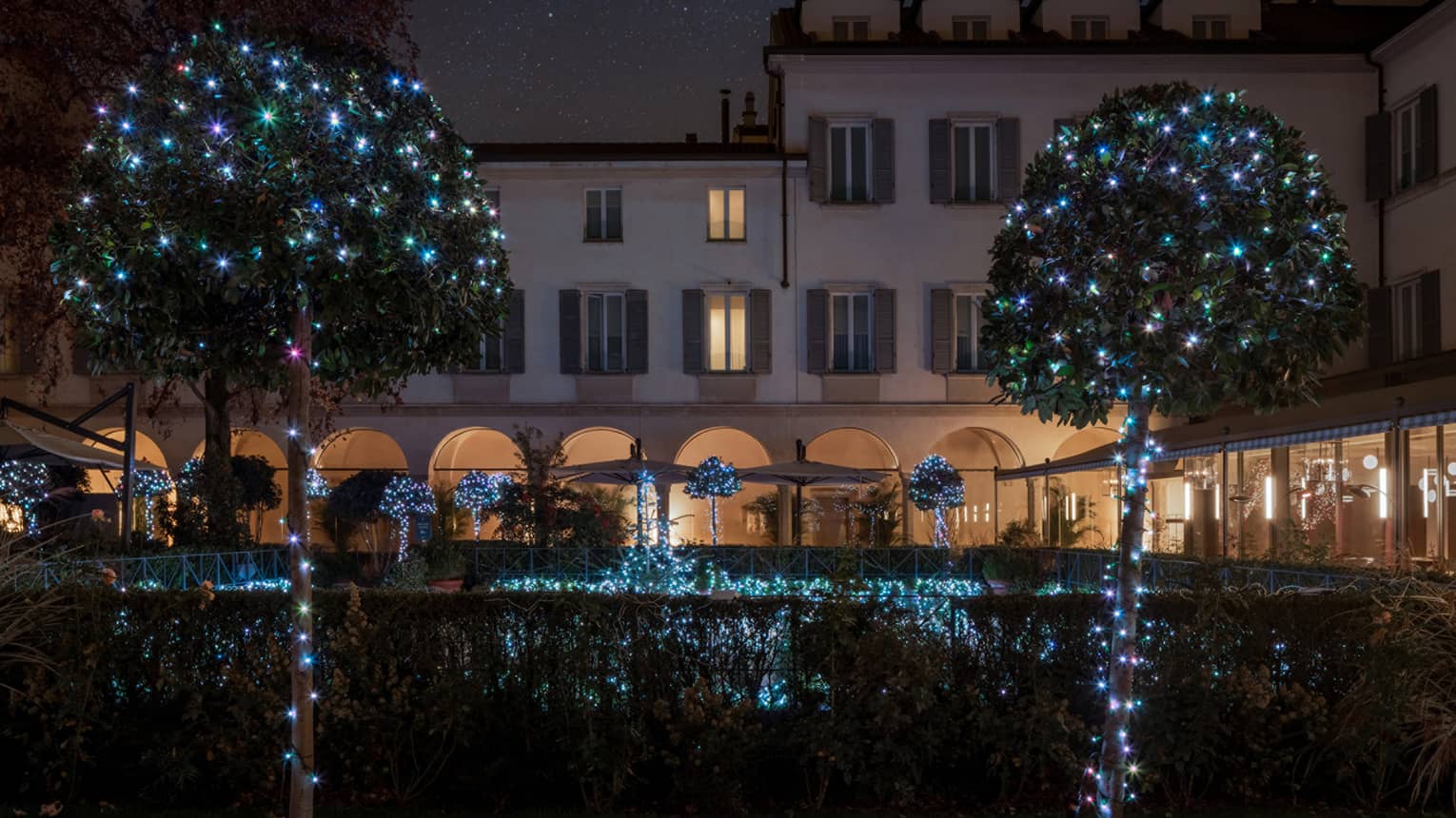 @julieannehartman ![Four Seasons Hotel Milan courtyard garden and shrubs]()