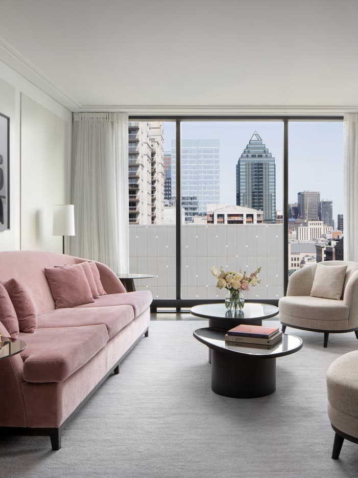 Savour sweeping views of Montreal’s prestigious Golden Square Mile from the floor-to-ceiling windows of our Signature One-Bedroom Suite. Envision yourself in an urban apartment inspired by Parisian architecture, unwinding by the fireplace in the modern living area, napping in the spacious bedroom, and relaxing in the luxurious bathroom with a free-standing tub. Experience the best of hotel suites in downtown Montreal.
