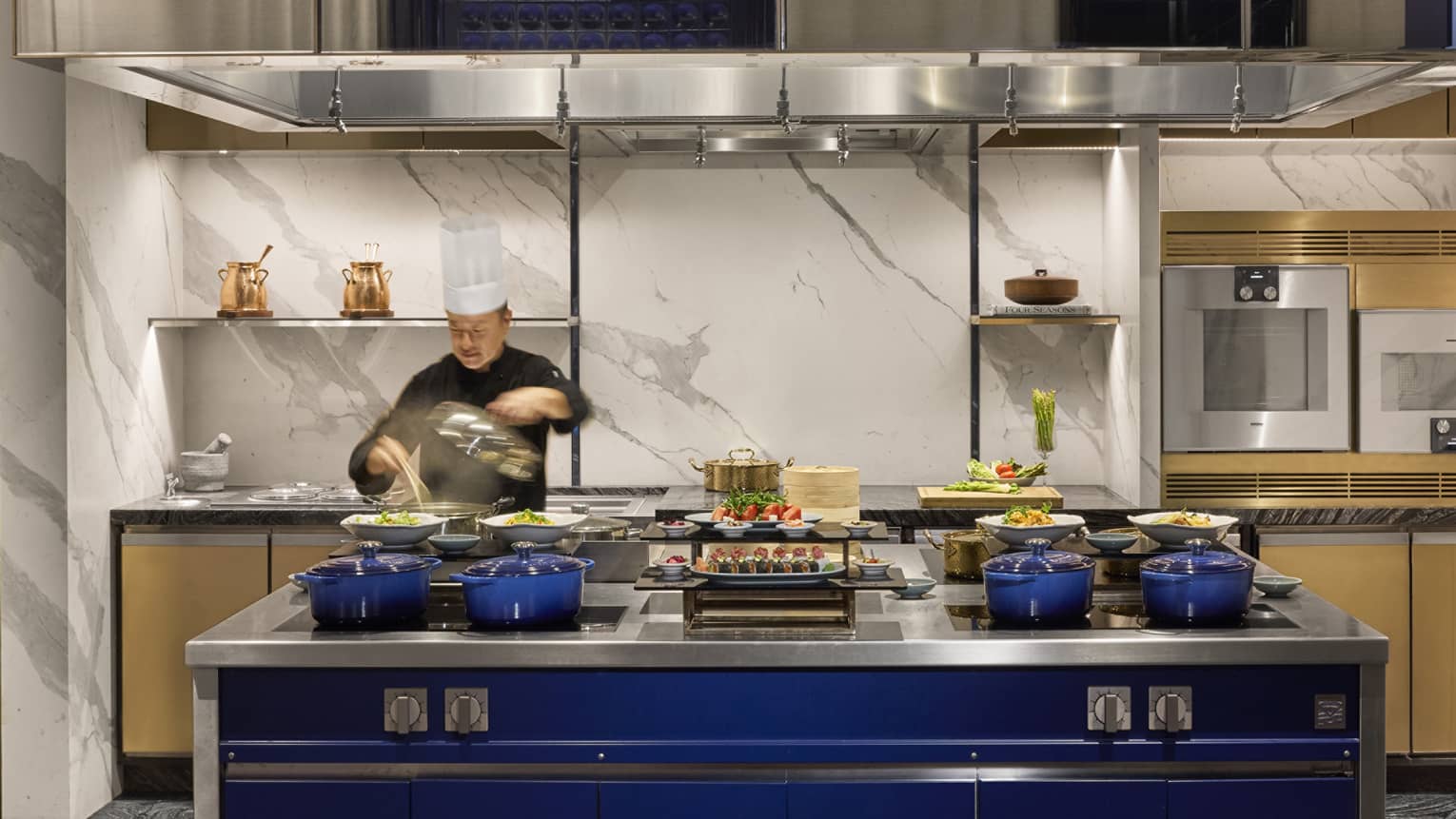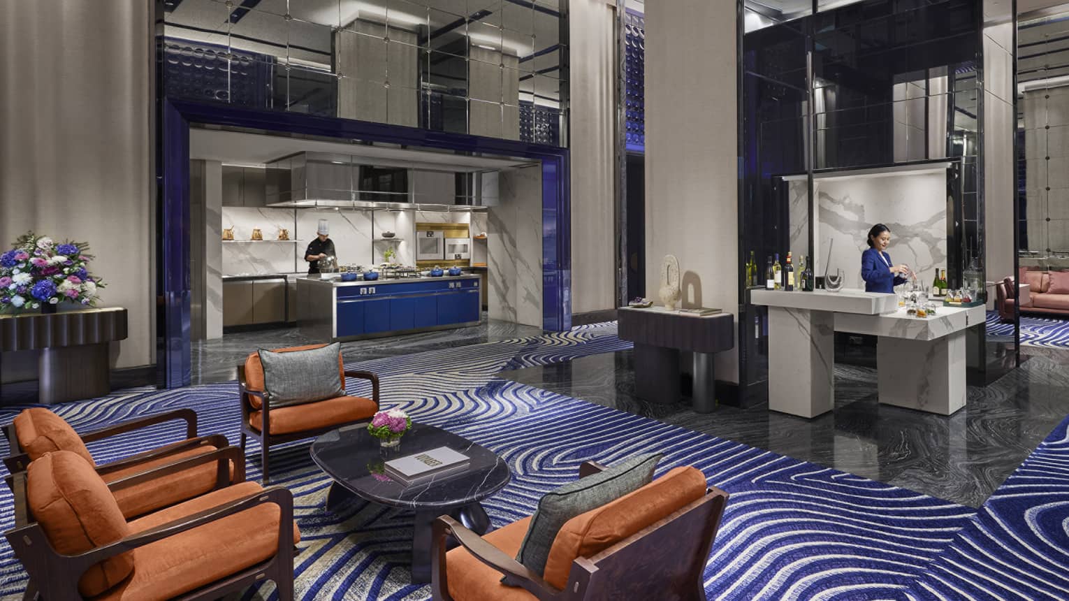 Meet and greet your guests in this spacious pre-function space featuring an interactive open kitchen setup, climate-controlled fridge and beverage-brewing island.