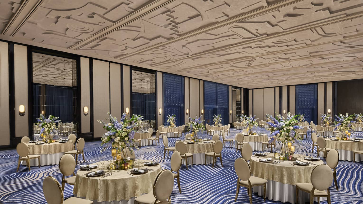 The Ballroom is a pillarless space with soaring 5.8-metre (19-foot) ceilings, designed to host unforgettable weddings, celebrations and corporate events. Featuring a private arrival foyer, expansive pre-function area, immersive lighting and LED technology, and a live kitchen experience, it blends contemporary luxury with personalized service.
