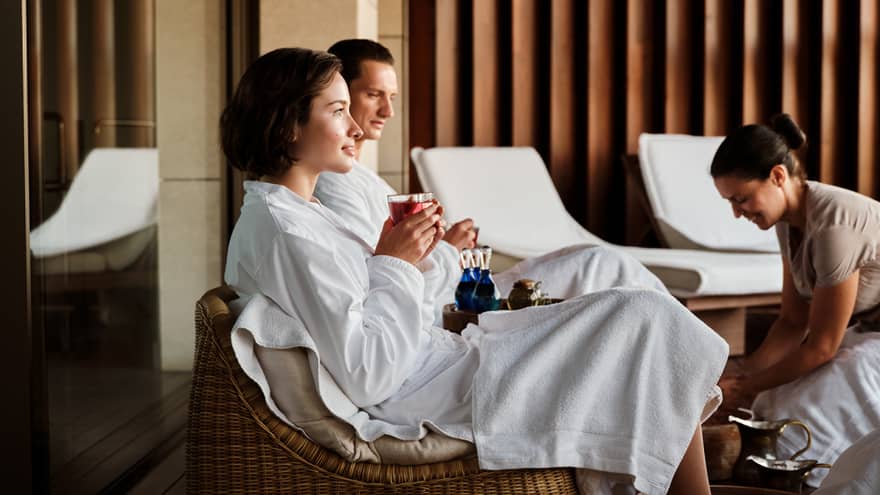 EXPERIENCE OUR THERMAL JOURNEYDeepen your relaxation with a comprehensive thermal circuit. Warm your muscles and let stress melt away in our communal sauna and steam room, then dip into our communal outdoor vitality pool with massage jets that target specific muscle groups. Afterwards, take time to relax and sunbathe in our Spa Garden.