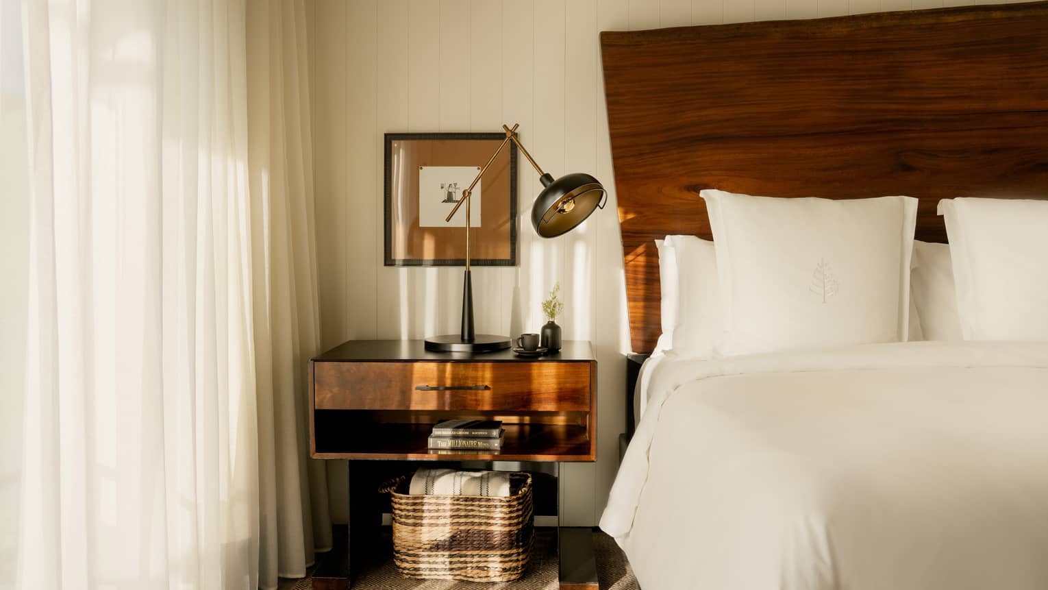Farmhouse chic coupled with modern elements of wood, metal and cement. Each guest accommodation includes a custom-designed live-edge wood headboard and locally sourced art.