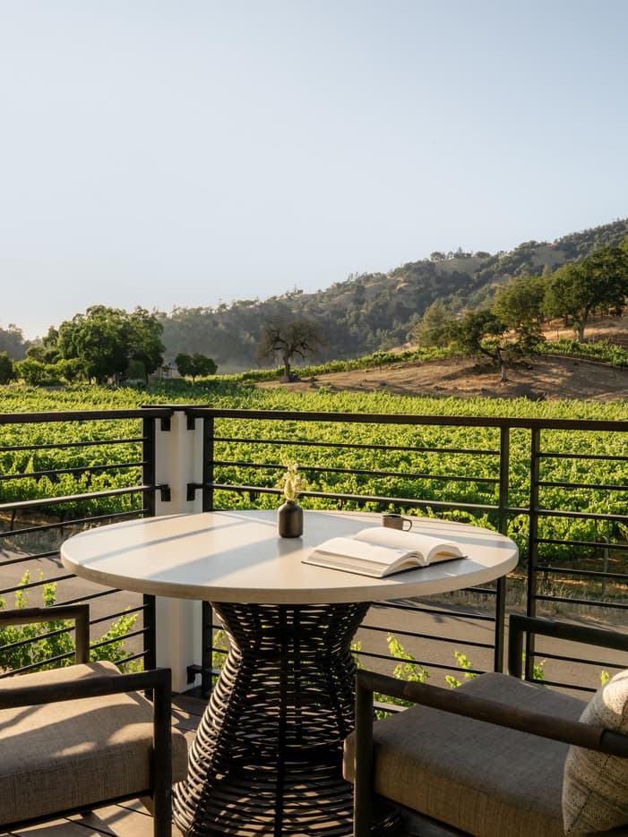 Enjoy a sense of seclusion in wine country – with nothing in your view but vineyards and the Palisades Mountains. Rustic yet elegant, this spacious sanctuary inspires indoor-outdoor living with an indoor fireplace and furnished balcony.