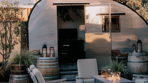 Cozy up by our Resort's custom Cabernet Camper and savour an al fresco menu by the fire pits.