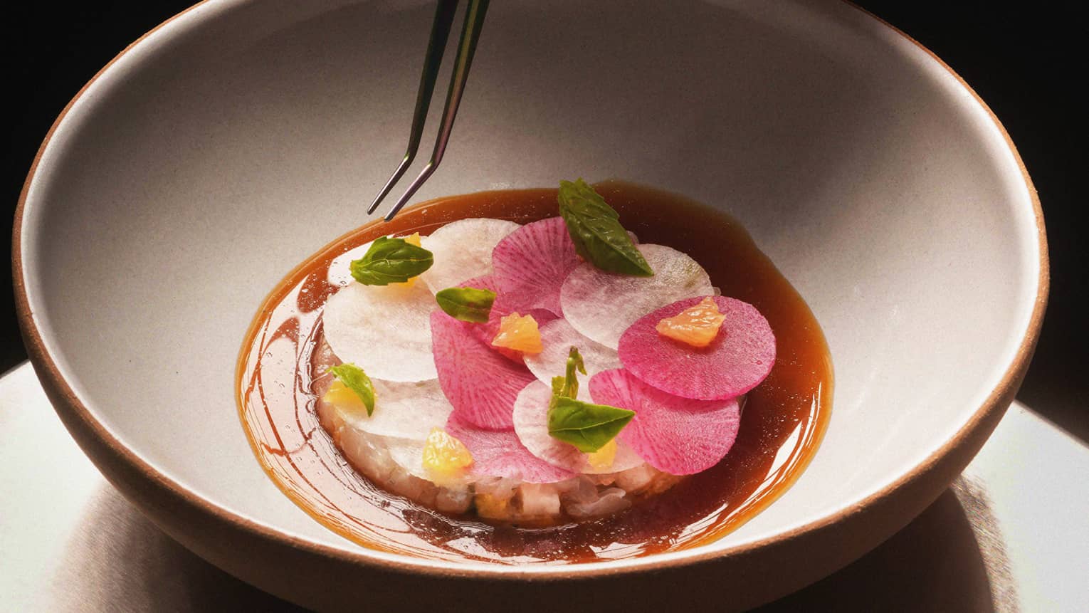 Red Snapper TartareRadish Celebration, Jicama, Florida Citrus, Kombu Dashi