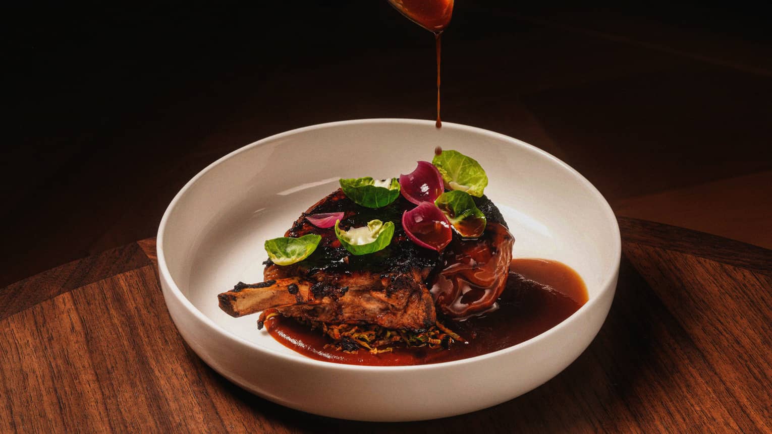 Tamarind Glazed Pork ChopBrussels Sprouts, Peanut Salsa Matcha