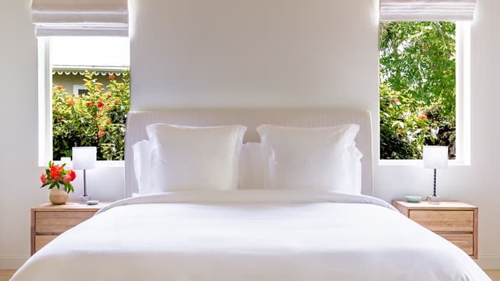 Four Seasons Resort Nevis, West Indies sits along the golden sands of Pinney’s Beach and offers more than 200 luxury accommodations, including 189 guest rooms and suites and 20 villas and estate homes. Each accommodation reflects a light, relaxed Caribbean aesthetic, and many include private pools or plunge pools and generous outdoor living spaces. Views extend across the Caribbean Sea, Nevis Peak, neighbouring St. Kitts, the golf course or lush resort gardens for a peaceful island backdrop.