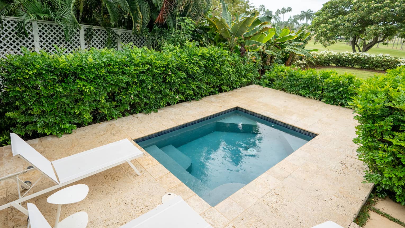 Seek refuge from the warm Caribbean sun on your own screened porch, perfect for enjoying a shady breakfast or a refreshing mid-day dip in a cool plunge pool.