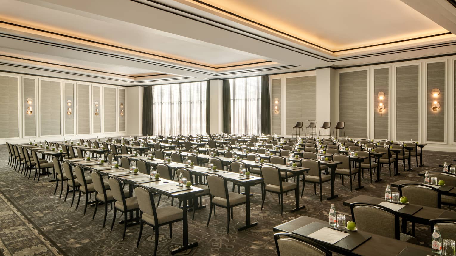 With 18-foot-high (5.5-metre-high) ceilings and a spectacular view of the Mississippi and riverfront, our grand ballroom offers a clean, modern design that makes it unique in New Orleans. Featuring state-of-the-art audiovisual equipment, this vast column-free space can be divided in two for smaller groups. The ballroom’s name pays homage to the famed Plimsoll Club that was once located at the top of our tower.