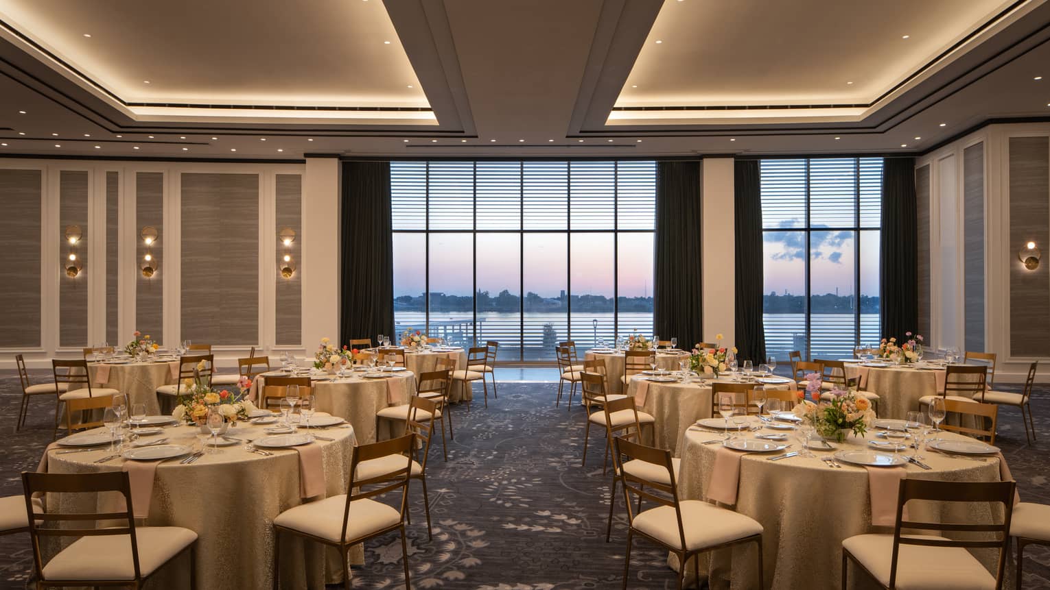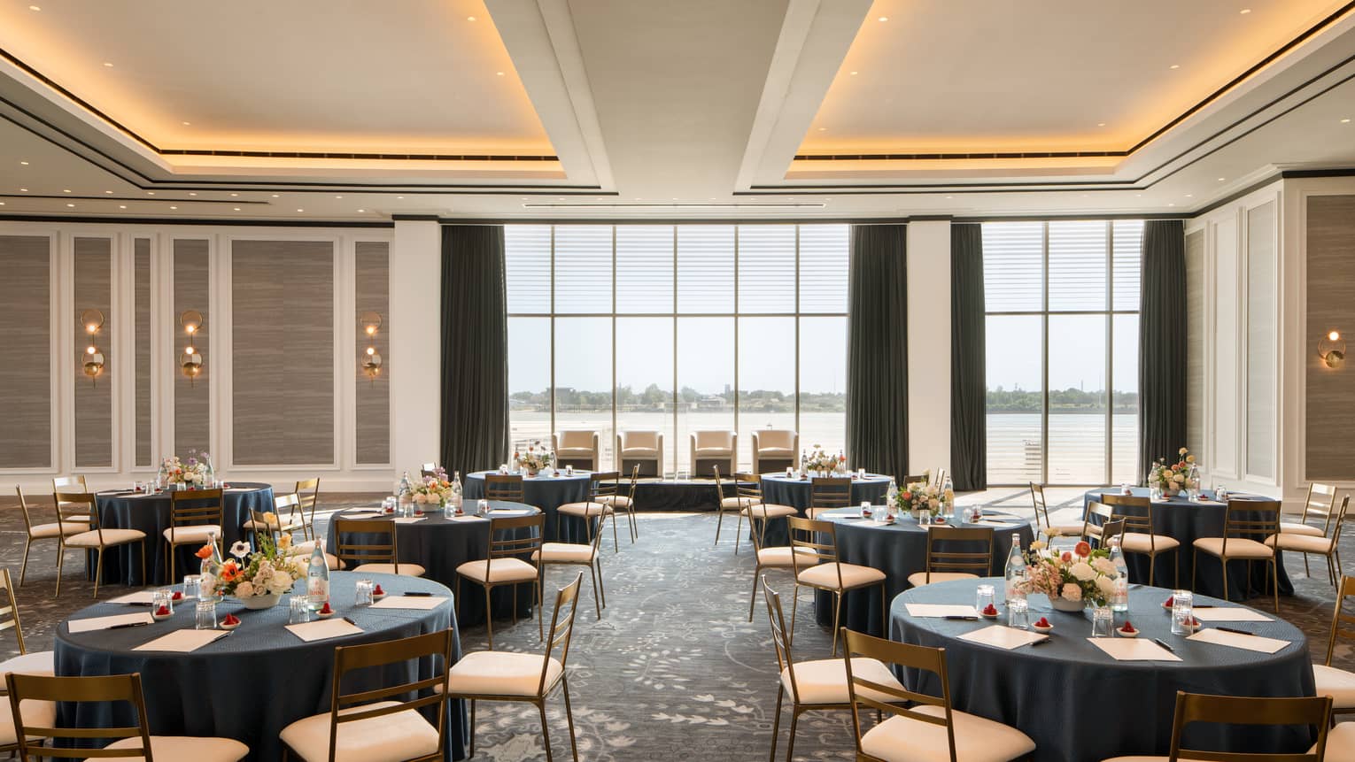 The epitome of modern sophistication, our junior ballroom offers front-and-centre views of the Mississippi and riverfront. With soaring 18-foot-high (5.5-metre-high) ceilings, the clean design provides a perfect blank canvas for any type of occasion – be it a business conference, social event or wedding.