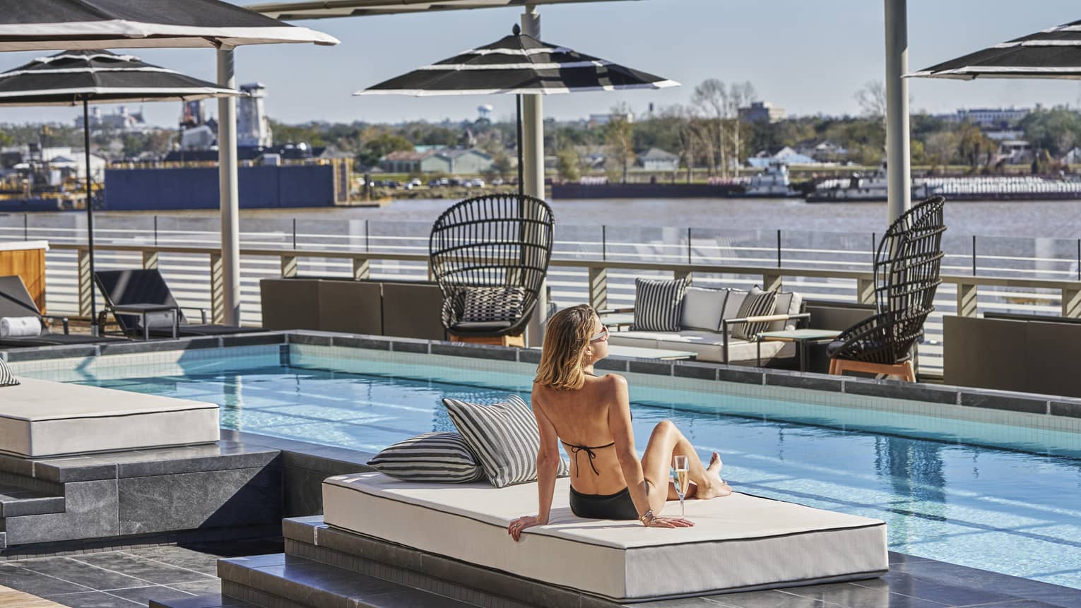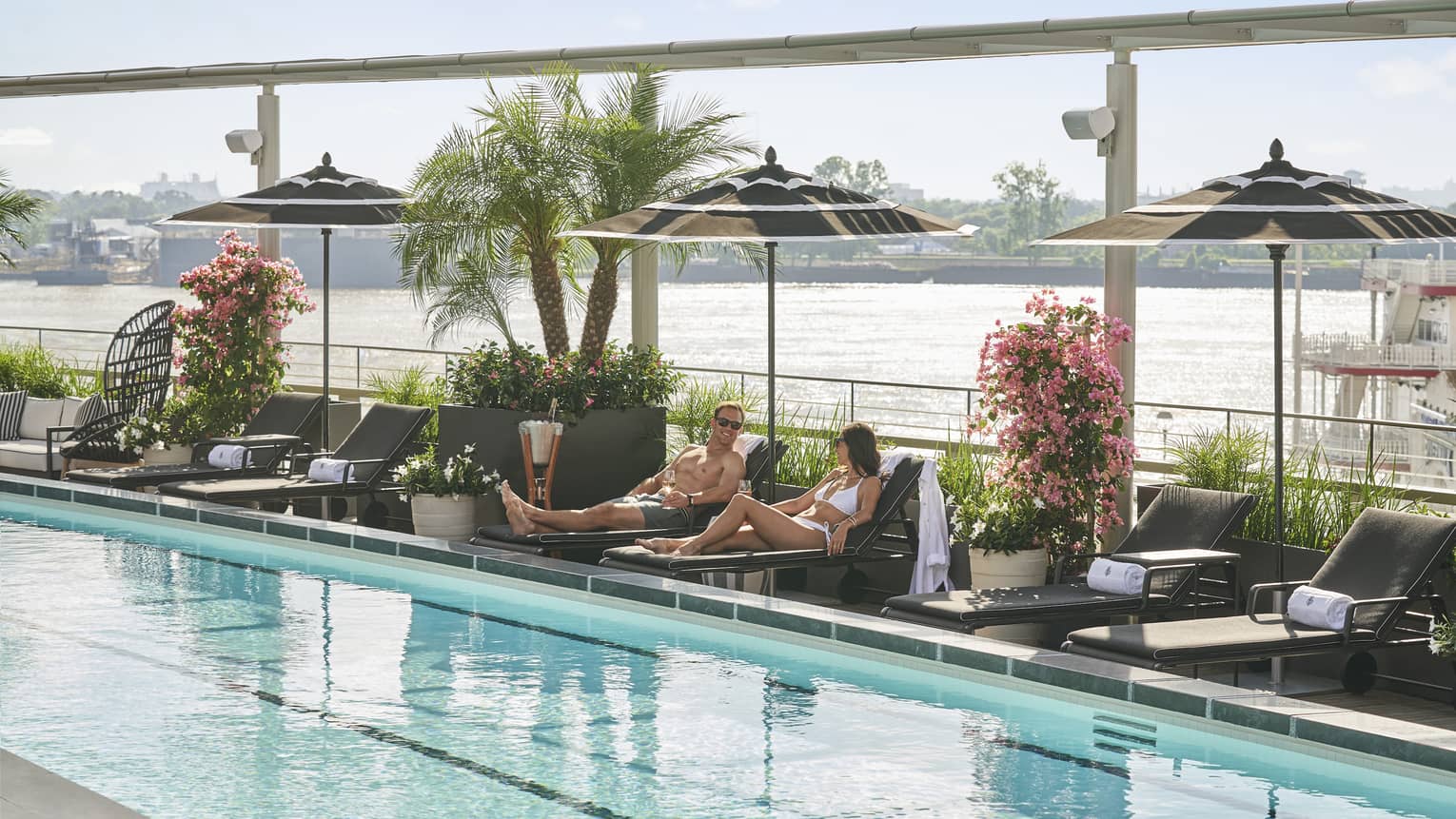 Relax on our fifth-floor rooftop pool deck