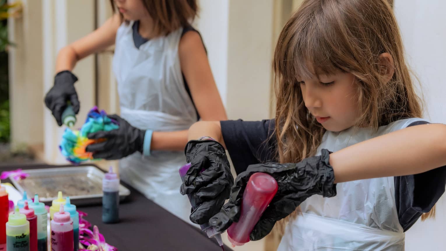 Join us at Kids For All Seasons to experiment with twisting, scrunching and swirling techniques, creating fun and beautiful patterns on a Four Seasons Oahu–logoed T-shirt.