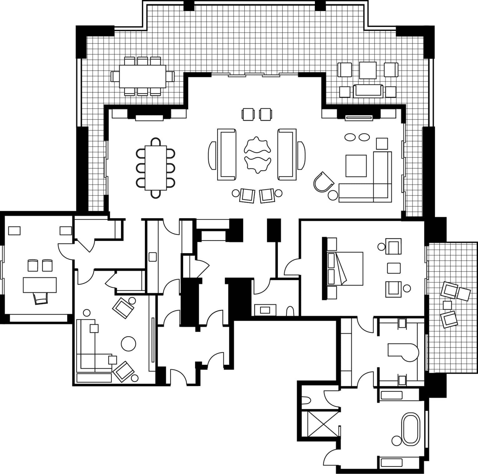 An Entertainer’s DreamWith an in-suite media room, an open living area, a family room, an office and a dining area set for eight in addition to the great outdoor space, this suite is ideal for private parties or intimate family evenings.
