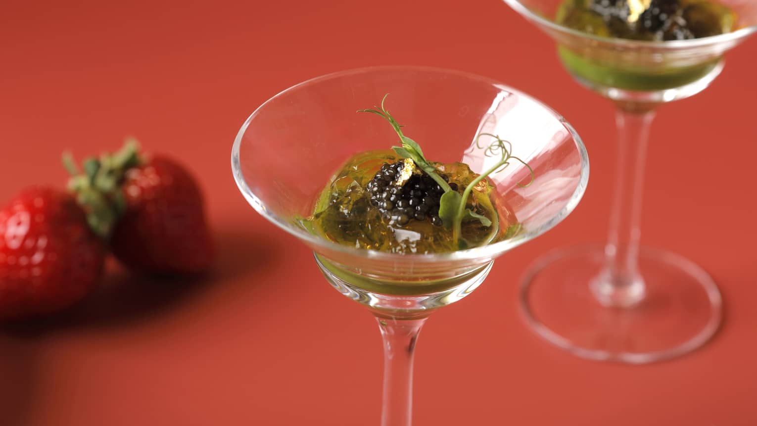 Shungiku-spinach mousseOscietra Caviar, Sakura-Flavoured Consommé Jelly