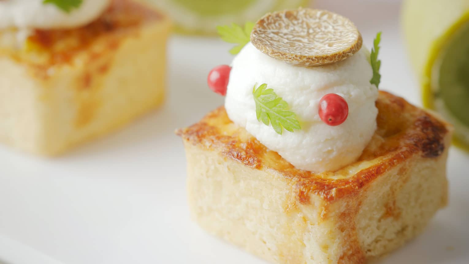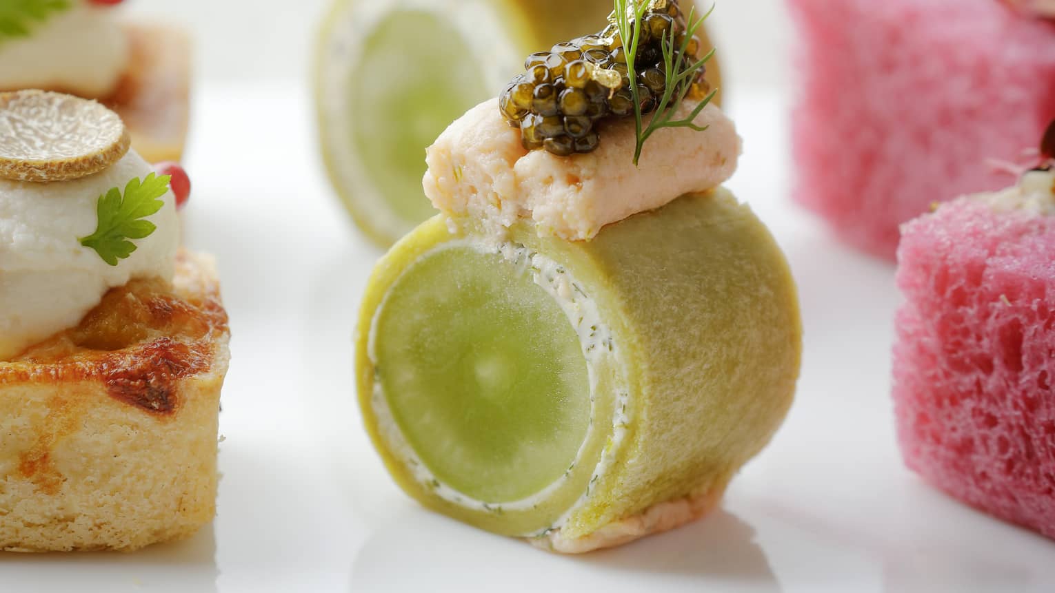 SHINE MUSCAT AND DILL CREAM SANDWICH ROLLSpinach Bread, Salmon Mousse, Osetra Caviar