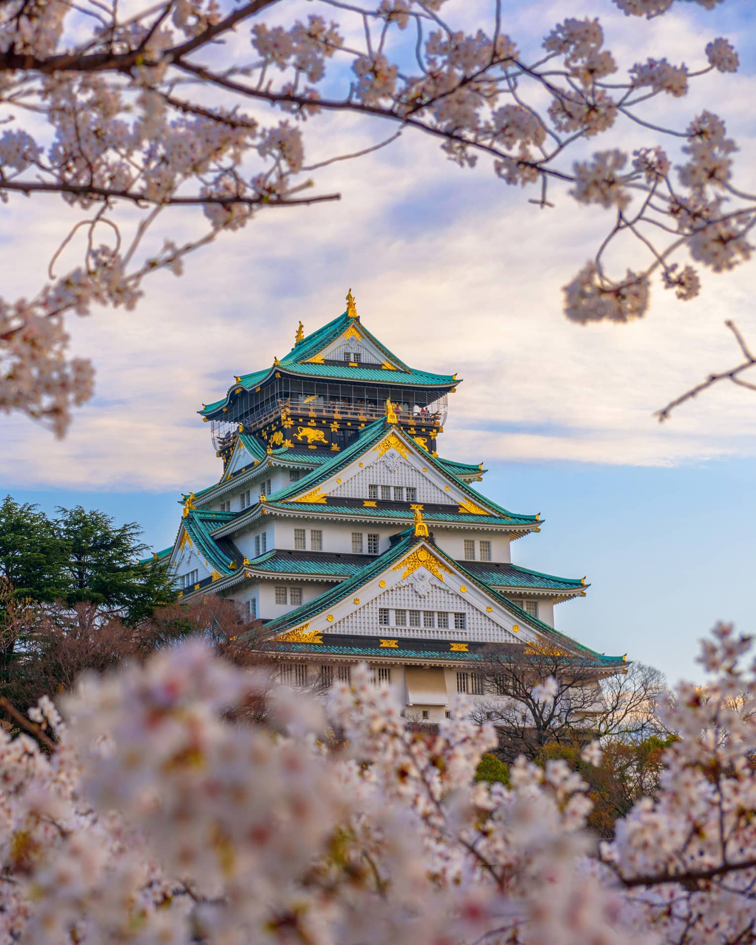 Experience the magic of spring in Osaka as you stroll beneath cherry blossoms at Osaka Castle Park, along the riverside at Kema Sakuranomiya Park, and through the historic Shitennoji Temple and serene Kozugu Shrine.