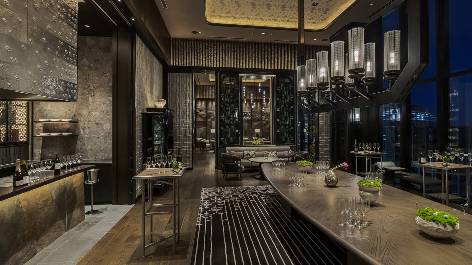 PRIVATE MEETING SPACELocated on the 37th floor, Sky Salon offers an elegant and intimate venue for up to 14 guests. Floor-to-ceiling windows provide dramatic panoramic views of the city, complemented by an open kitchen and a large table that create an ideal setting for discreet high-level meetings, intimate weddings, or catered social events.