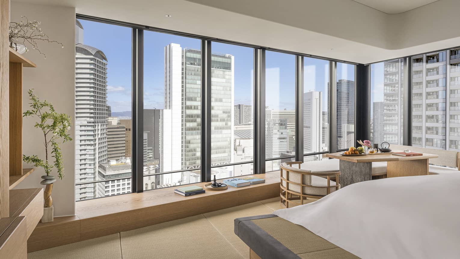 Tatami Corner SuiteTatami Corner Suite features distinct sleeping and living areas, this corner suite overlooks sweeping cityscapes, with the Japanese-style bathroom with a view completing your modern ryokan experience.
