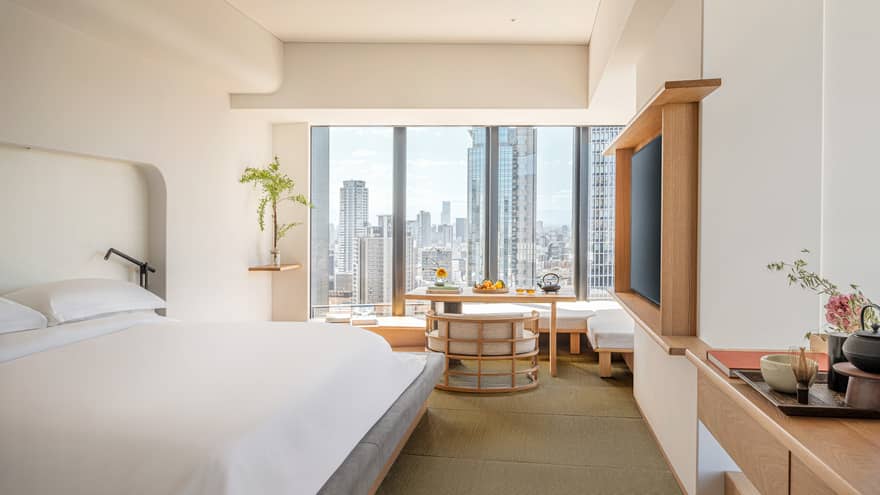 Tatami Premier Corner SuiteBathed in natural light, this spacious corner suite invites you to slip off your shoes and experience a profound sense of space and serenity. From the organic feel of the tatami floors to the remarkable comfort of the futon bedding, every detail has been carefully considered to bring you closer to the traditions and customs of Japan.