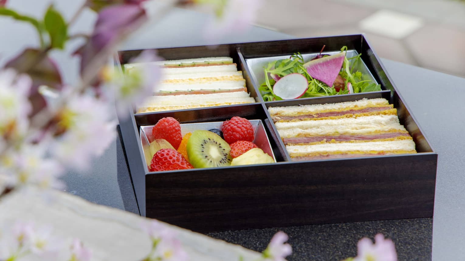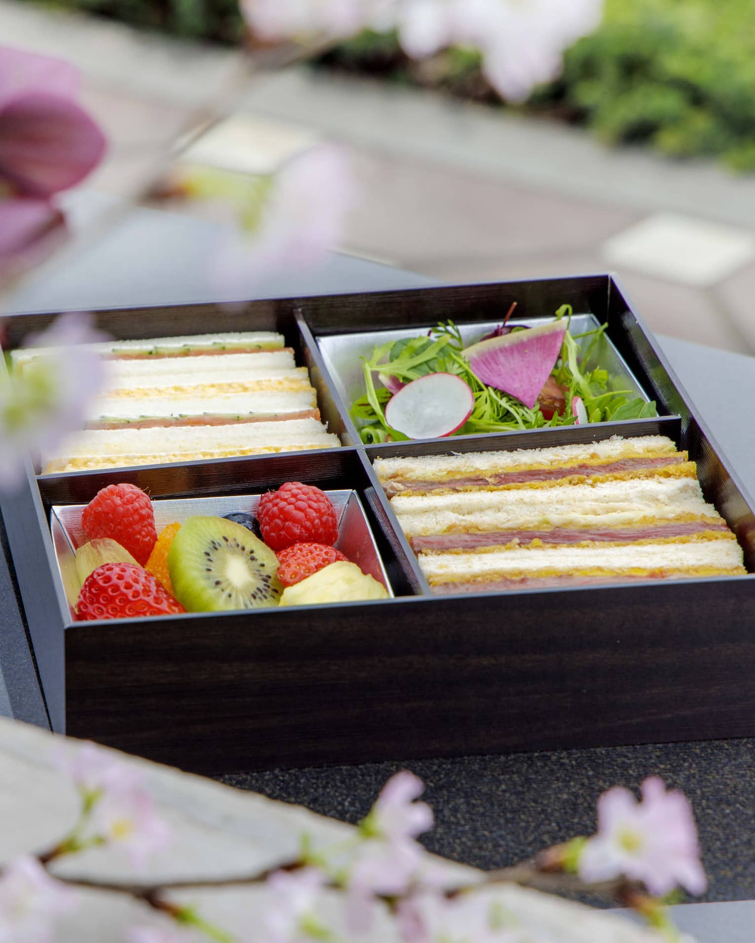 Elevate your on-the-go experience with our diverse sandwich options, a seasonal salad, fresh fruit, water, juice and a snack. Our picnic box is fit for business or leisure, perfect for sightseeing and staying energized.