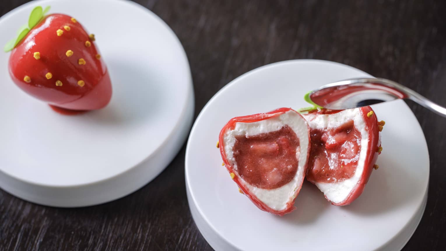 STRAWBERRY JELLY WITH YOGHURT MOUSSEThis sublime dessert is crafted to celebrate the acidity and fragrance of seasonal strawberries. Silky yoghurt mousse brings a richness, layered with strawberry gelée that captures the fruit’s pure essence. The interplay of subtle tartness and refined sweetness creates a harmonious balance, unfolding into a deep, lingering flavor with every bite.