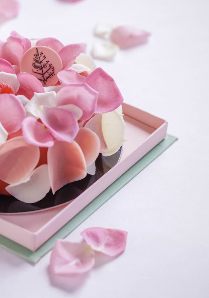 Our Gâteau Bouquet is a speciality of est’s Pastry Chef Michele Abbatemarco. Opening the gift box reveals an edible bouquet of raspberries and rose petals cloaked in strawberry glaze. Filled with the scent of roses, each bite brings new surprises: sweet vanilla, bright limoncello sponge and tart wild strawberries. 13 centimetres: JPY 5,800.