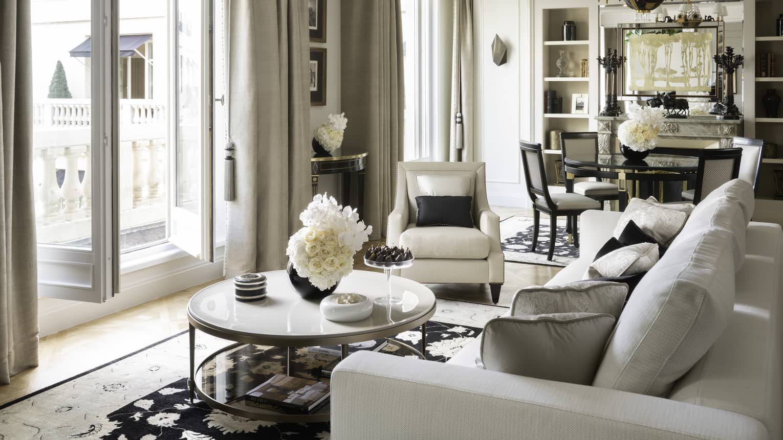 These sophisticated suites have all the charm of a spacious Parisian apartment, immersing guests in French glamour and modern luxury. Interiors are adorned with classical or Empire-style works of art, while charming balconies offers wonderful views of the Hotel’s Marble Courtyard.