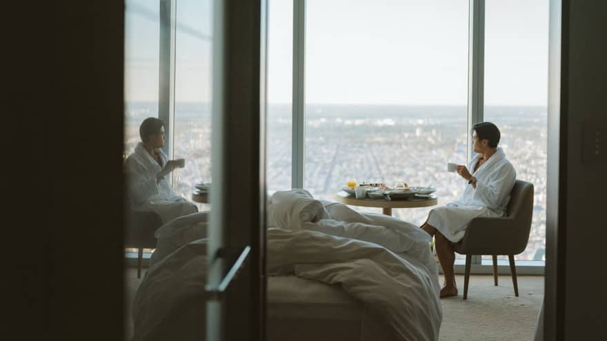 Rooms With A ViewEach of our 219 guest rooms and suites – occupying the 48th to 56th floors – unveils unobstructed city views. Our rooms are equipped with voice-activated remotes and complimentary premium internet, fostering high-speed connections in a comfortable space. Our signature Four Seasons beds, sleek design and unparalleled scenery make for the perfect space for your attendees to relax and recharge.