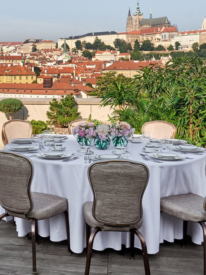 Picture-Perfect terracesImagine your guests sitting down for dinner in the ballroom, mingling on one of our outdoor terraces beneath the golden sun and dancing the night away next to moonlit views of Prague panorama.